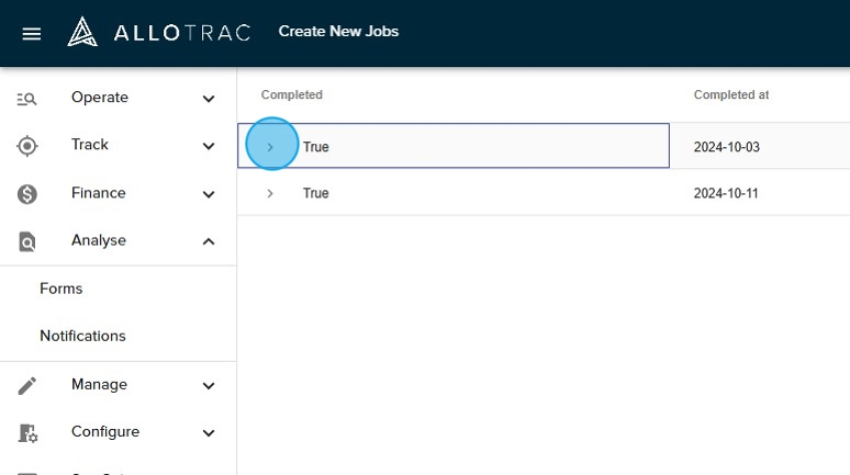 9. To view an individual form's data, click the ">" button on the left of each form submission