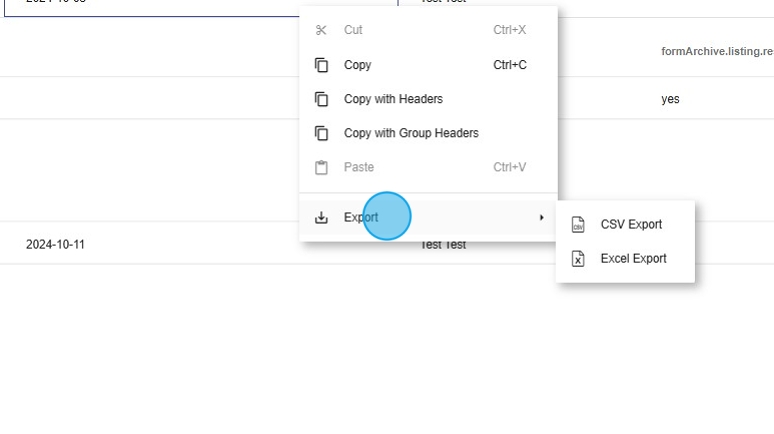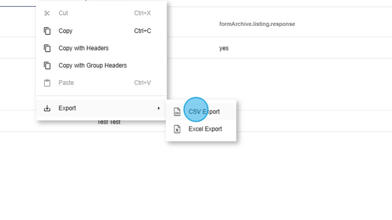 15. Then either choose to export the forms in a .csv file or excel file formats