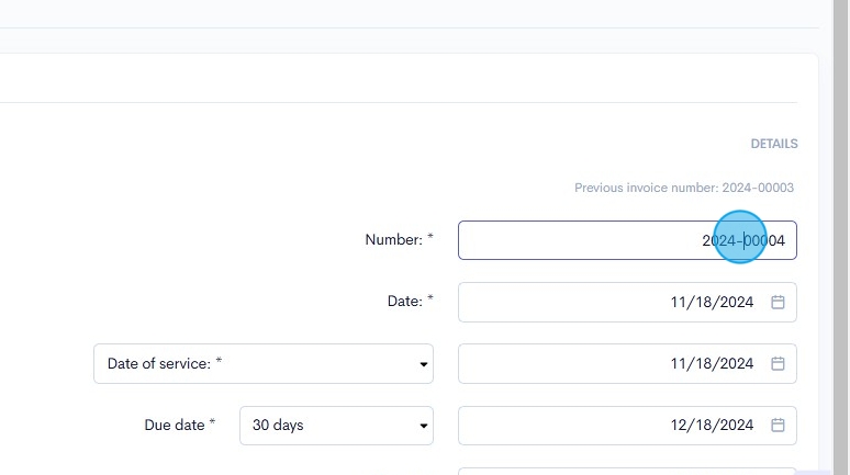 7. We will automatically assign each invoice with it's own invoice number, however, if you want to you can click the invoice number field and enter in a customised number