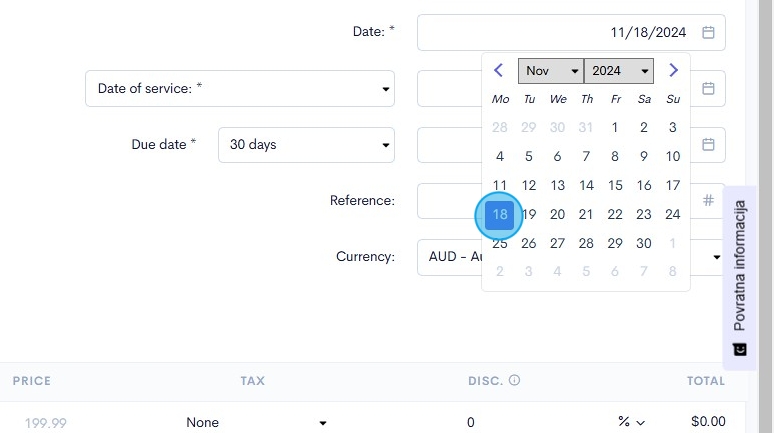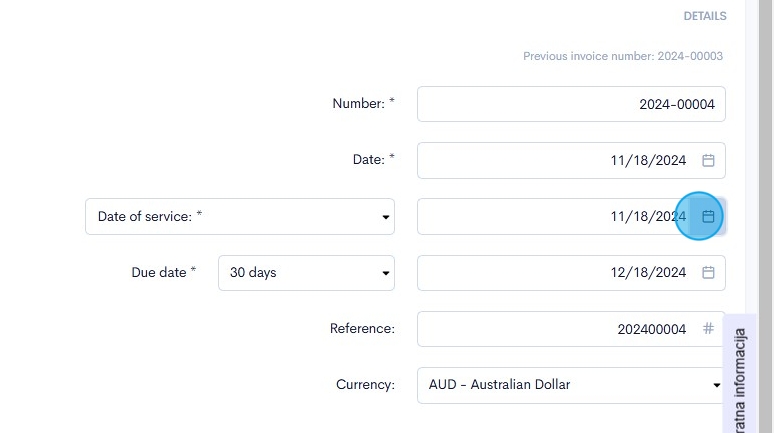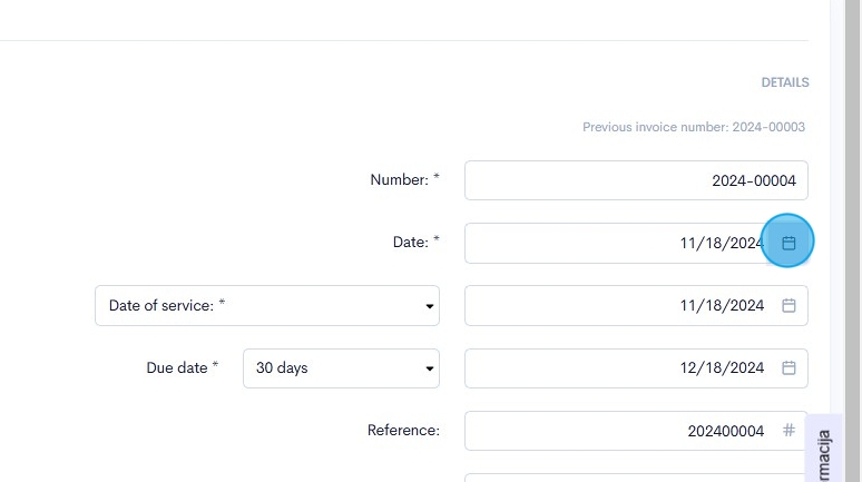 8. Click on the calendar icon within the invoice date field
