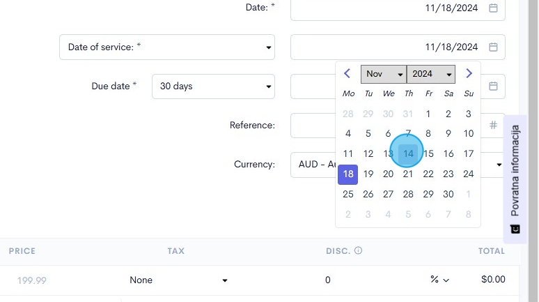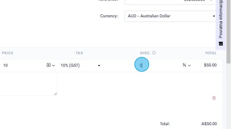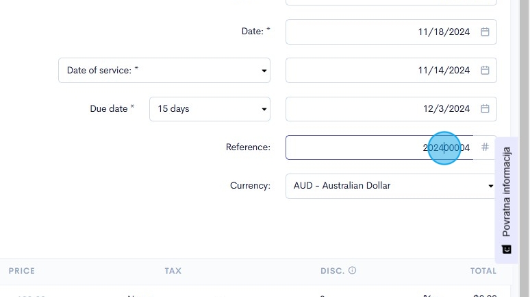 12. We will automatically assign each invoice with it's own reference number, however, if you want to you can click the reference number field and enter in a customised number