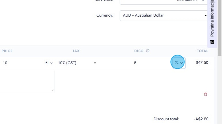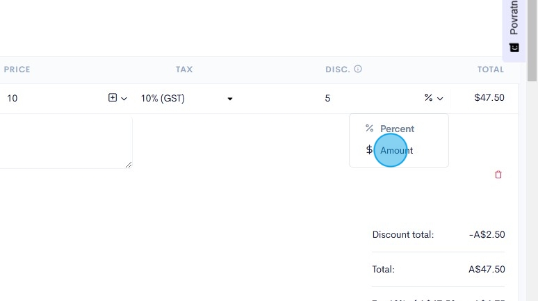 20. If you want to insert a flat rate discount to the invoice, click the "%" button