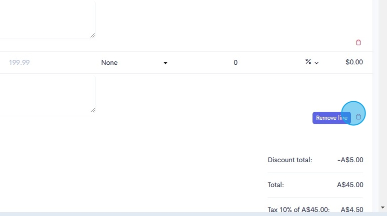 24. To remove a line item from your invoice, under each item, there is a trash can icon. Click this button to remove the item