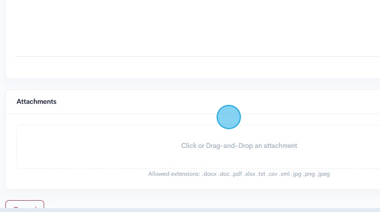 27. Click on the "Attachments" field to upload any relevant files/ documents to the invoice