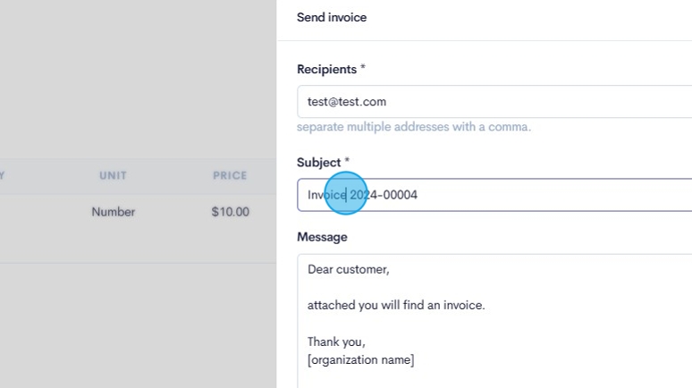 34. If you want to edit the default email subject for the invoice, click on the "Subject" field and type in your own subject line
