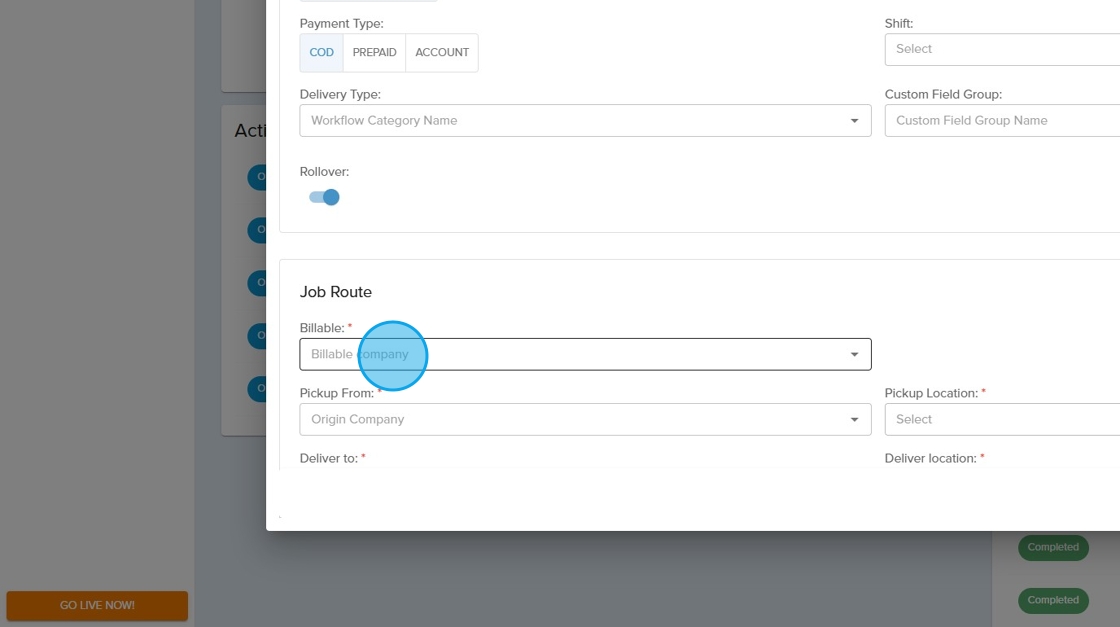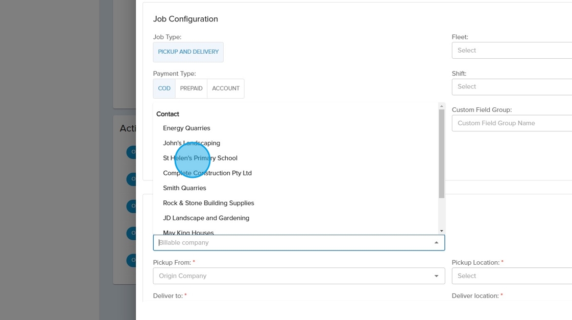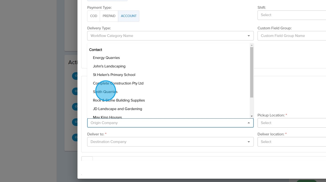 6. As an example, we will also save an origin/ pickup company in this template. Click the "Pickup From" field as shown below