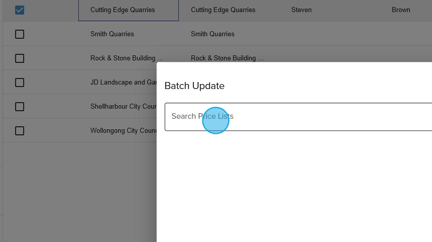 8. Click the "Search Price Lists" field and type to search for the price list that you want to assign to this contact
