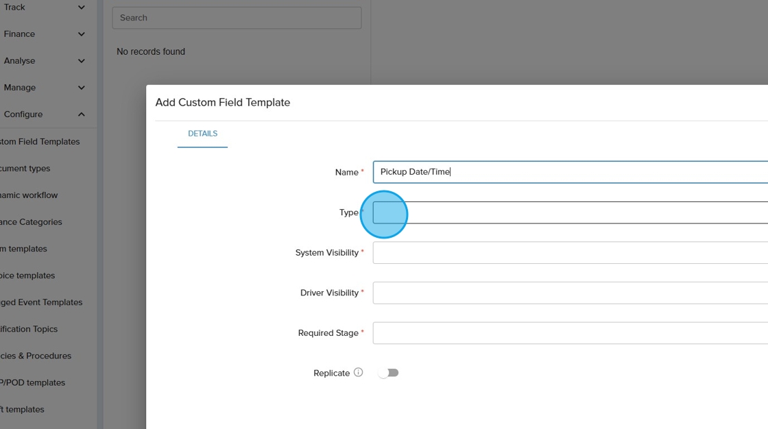 7. Select the correct custom field "Type" from the drop down