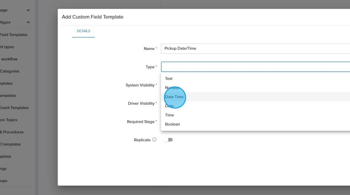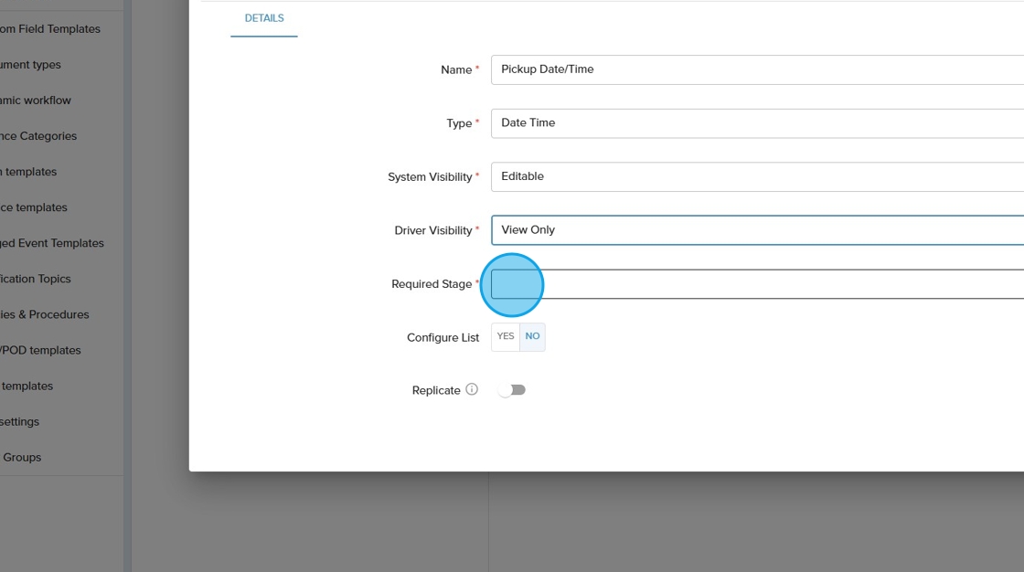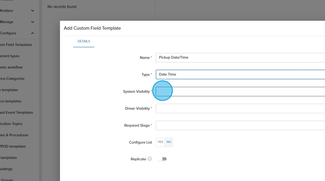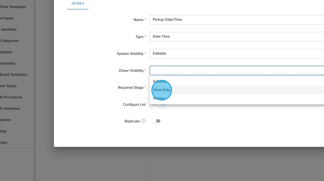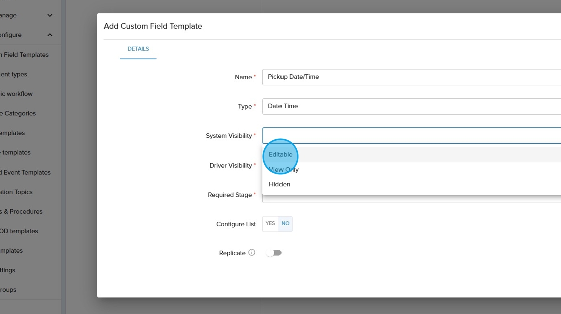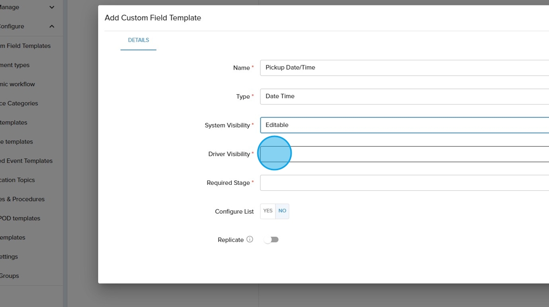 10. Click the "Driver Visibility" field. Driver visibility refers to how and where in the driver application that the custom field will show