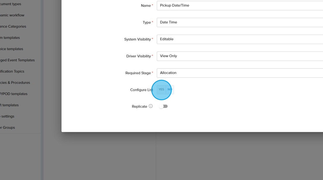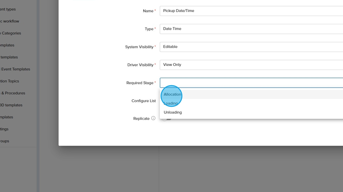 11. Select how the custom field should appear in the driver application from the drop down.