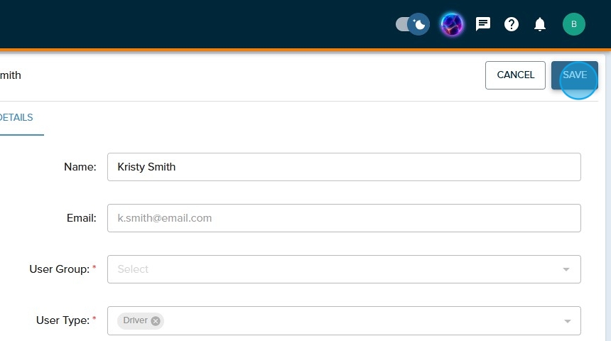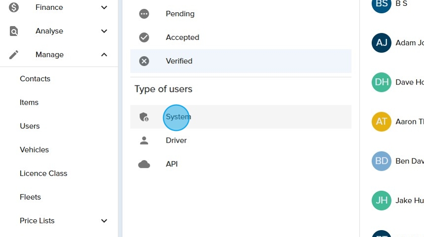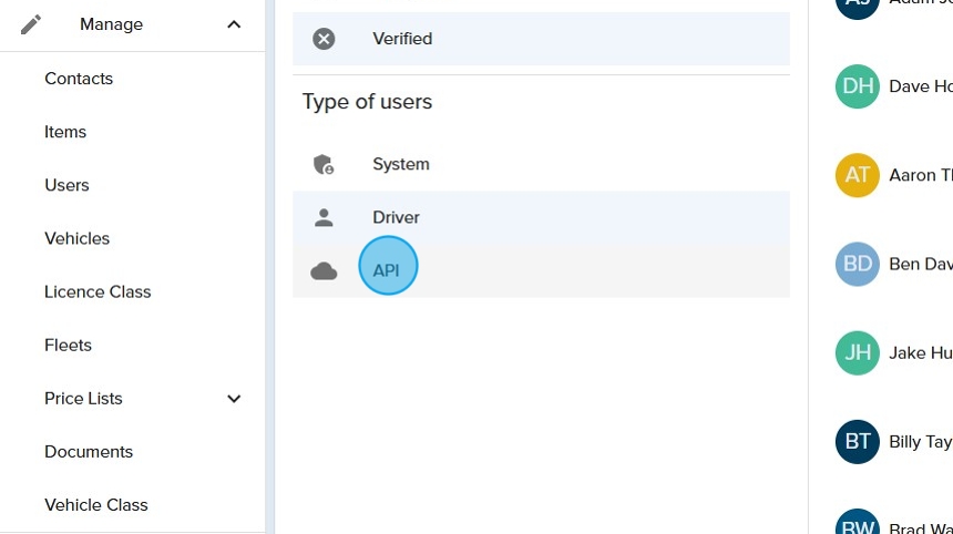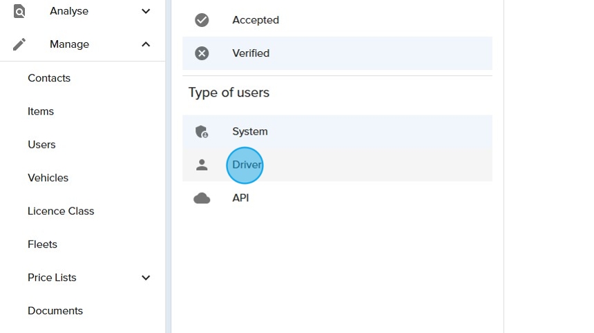 9. If you would like to filter out and view just driver users within this screen, click "Driver"