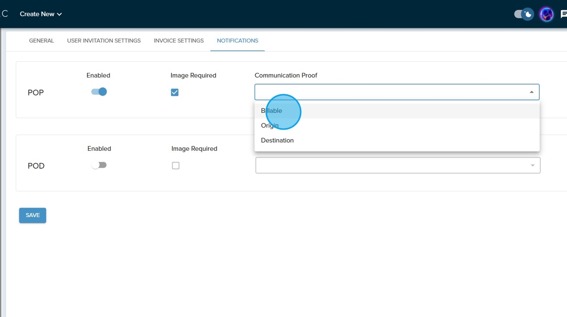 8. Click "Billable" from the dropdown if you want the Billable contact to automatically receive the POP email