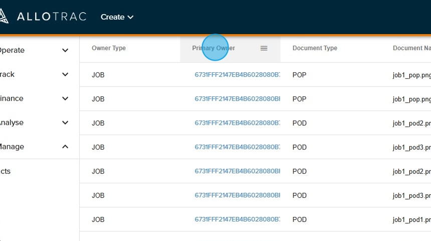 6. The "Primary Owner" column will show the link to the physical owner of the document. If the Primary Owner of the document is a vehicle, the value for this field will be a direct link which will open up that vehicle if you click on it so you can amend and edit the document
