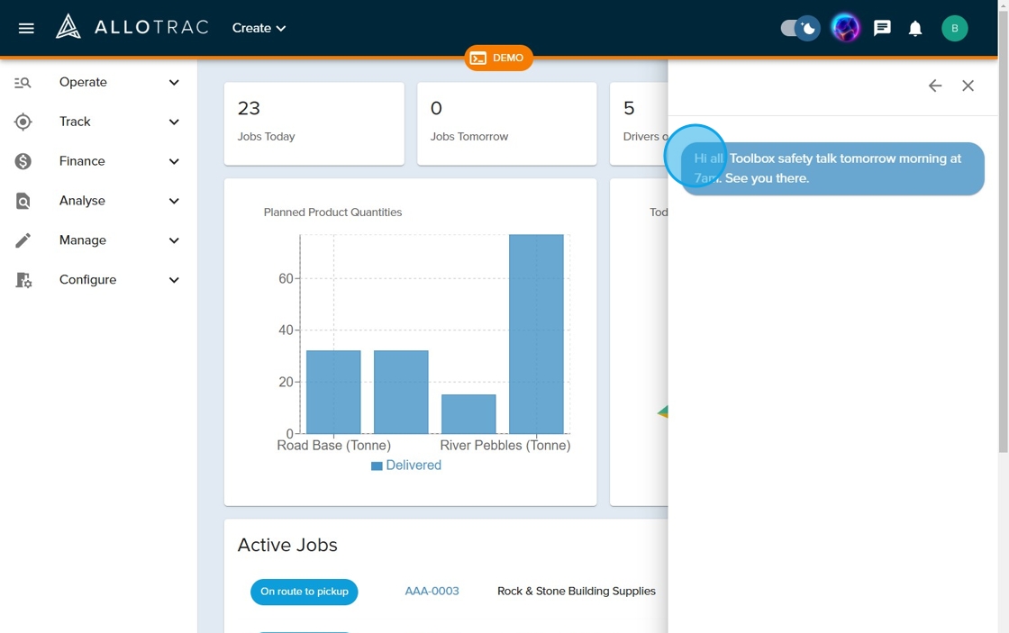 How to message driver & system users and Allie using Chat Ops | Allotrac Help Center