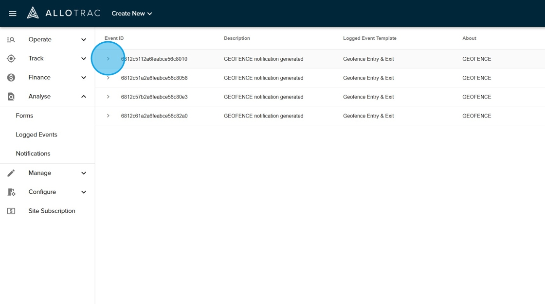 View all your site's critical activities, including checklist failures, licence expiries, and geofence events, in the logged events screen